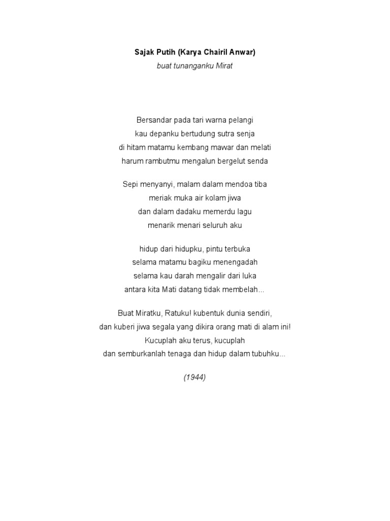 Doc Analisis Puisi Sajak Putih Karya Chairil Anwar Fathur Rahmanxx Academia Edu